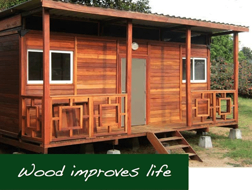 The patented solid wood supporting wall concept allows an extremely long lasting and technicaly stable construction. The use of tropical wood with great sturdiness and imputrescibility allows to offer healty and definitive solutions while offering a higher level of comfort than traditional materials (concrete, metal, plastic).